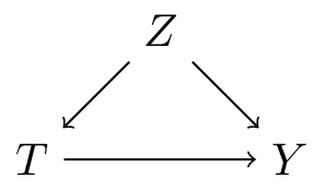 \[P_{\text{obs}}(Y|T) = \sum_{z} P(Y|T,Z=z)\color{red}{P(Z=z|T)}\]