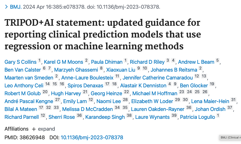 TRIPOD+AI on prediction models (Collins et al. 2024)