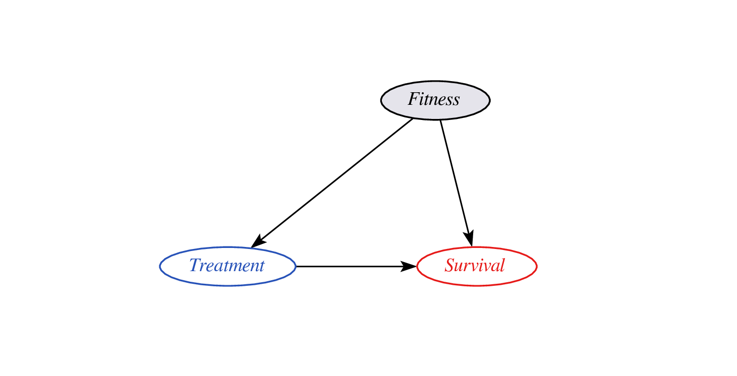 \[\begin{align} \text{treatment effect} &:= E[y^1] - E[y^0] = \mu_1 - \mu_0 \\ &:= E[Y|\text{do}(T=1)] - E[Y|\text{do}(T=0)] \end{align}\]