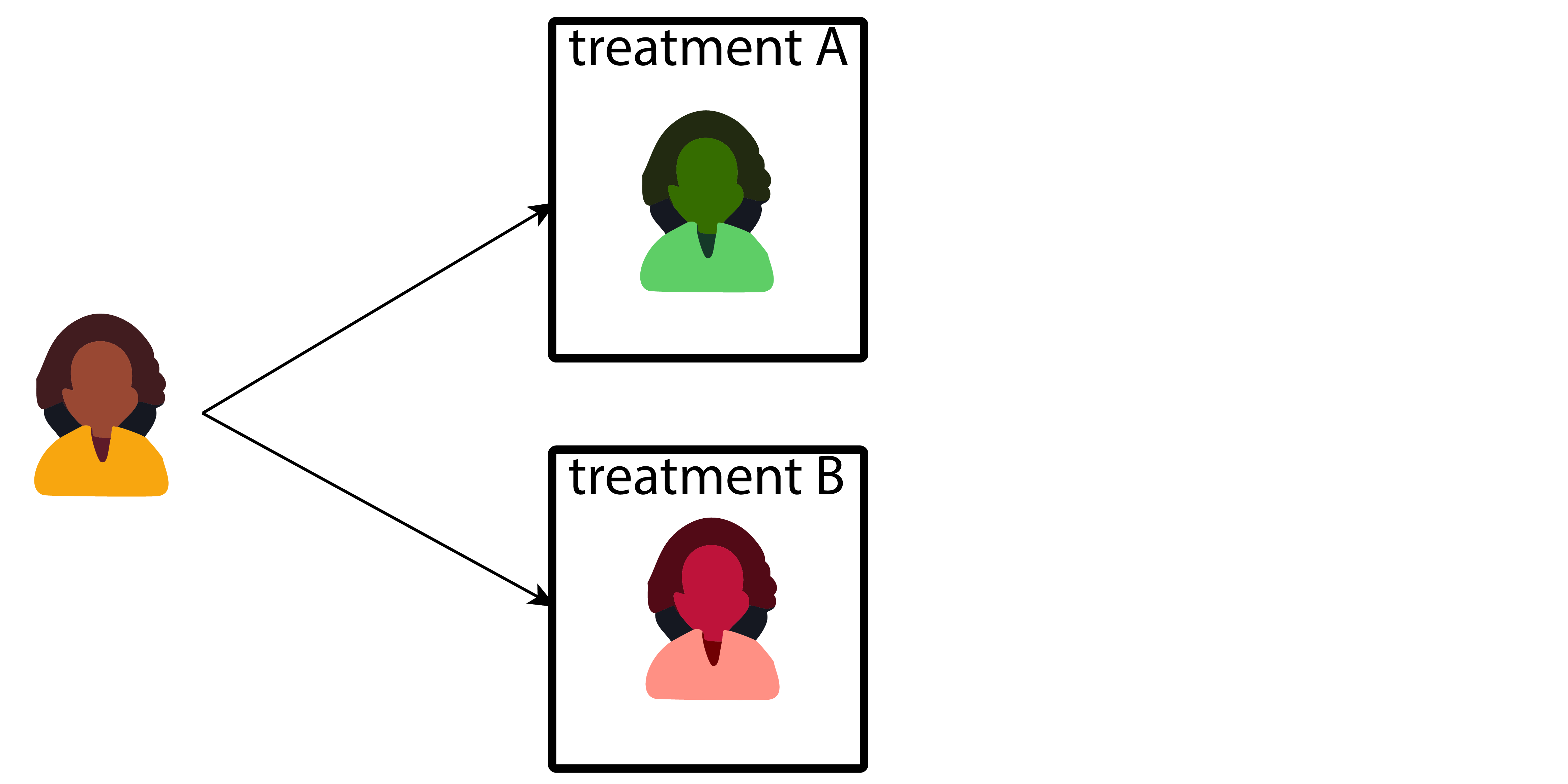 \(X\): treatment, \(Y\): outcome, \(U_1, U_2\): exogenous noise variables; \(p(U_1=1)=p(U_2=1)=0.5\)