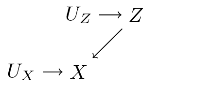 \[ F = \begin{cases} Z \leftarrow f(U_Z) \\ X \leftarrow f(Z, U_X) \end{cases} \]
